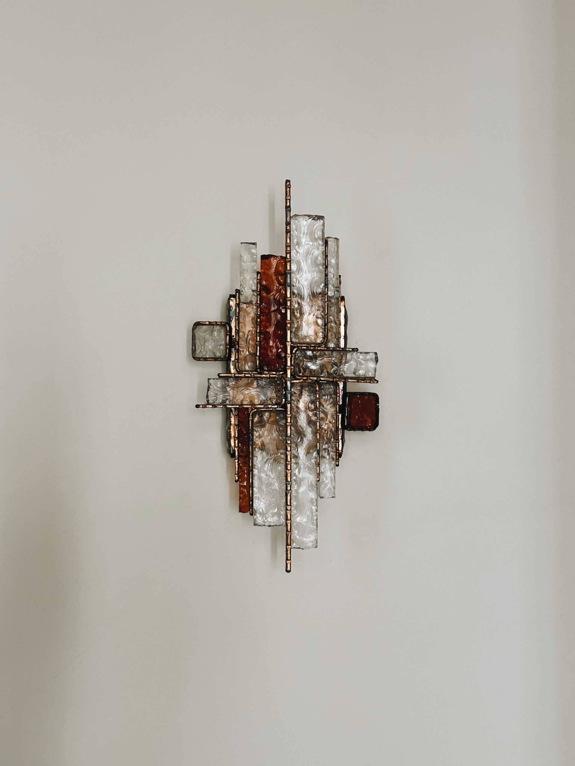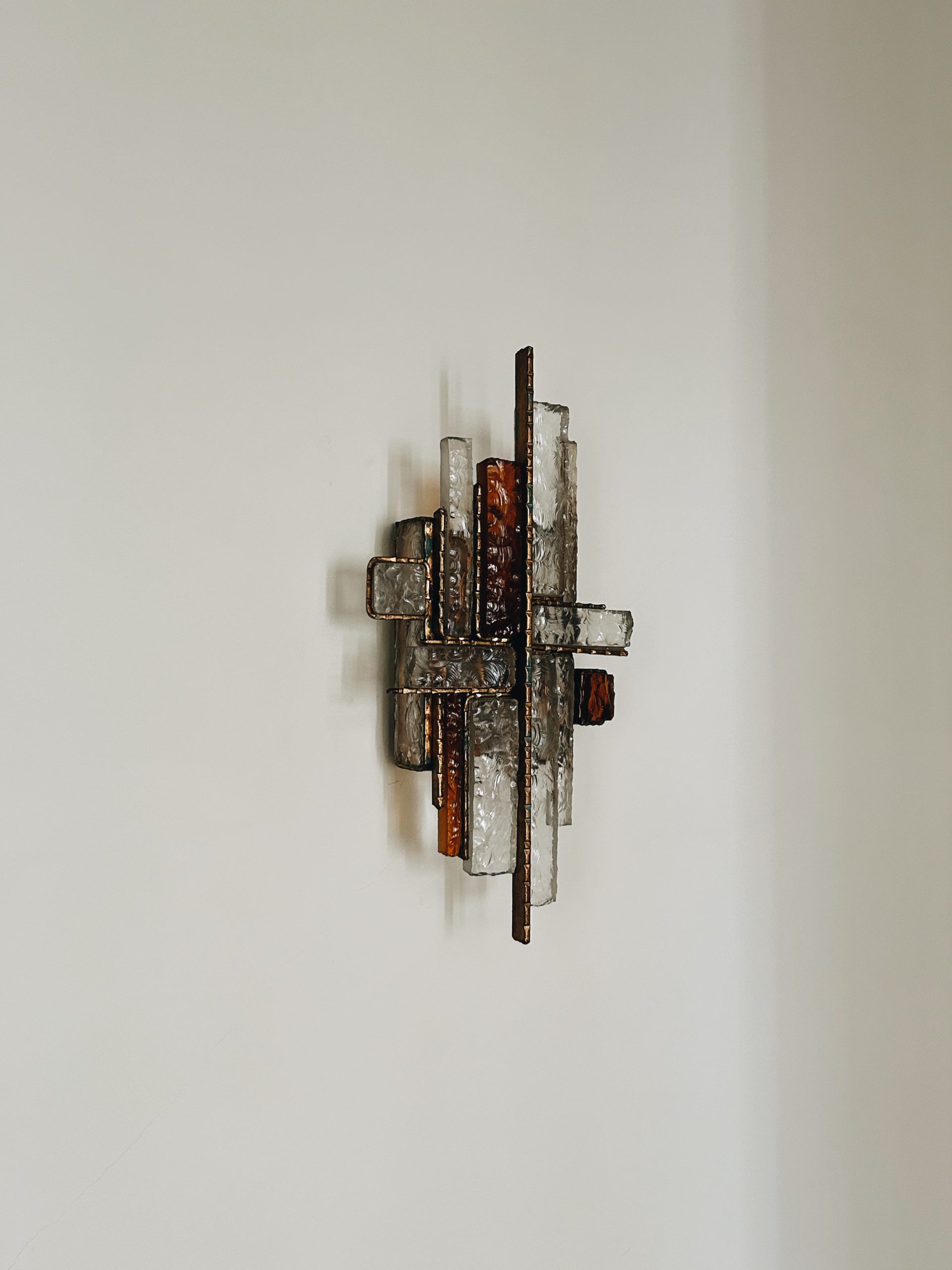 Fabricados en laton y cristal de murano transparente y ambar, diseñados por Albano Poli.